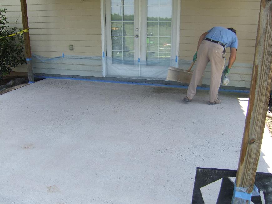 This patio had a sealer previously applied to it; therefore, it had to be ground down prior to staining it.