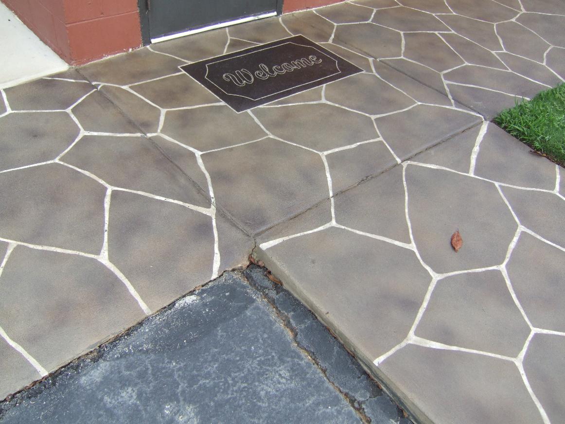 We used four of Smith's colors to achieve this flagstone pattern. The "welcome mat" is actually stained and engraved INTO the concrete! It looks awesome! Only one problem, there will be no hiding the key under this mat! :-)